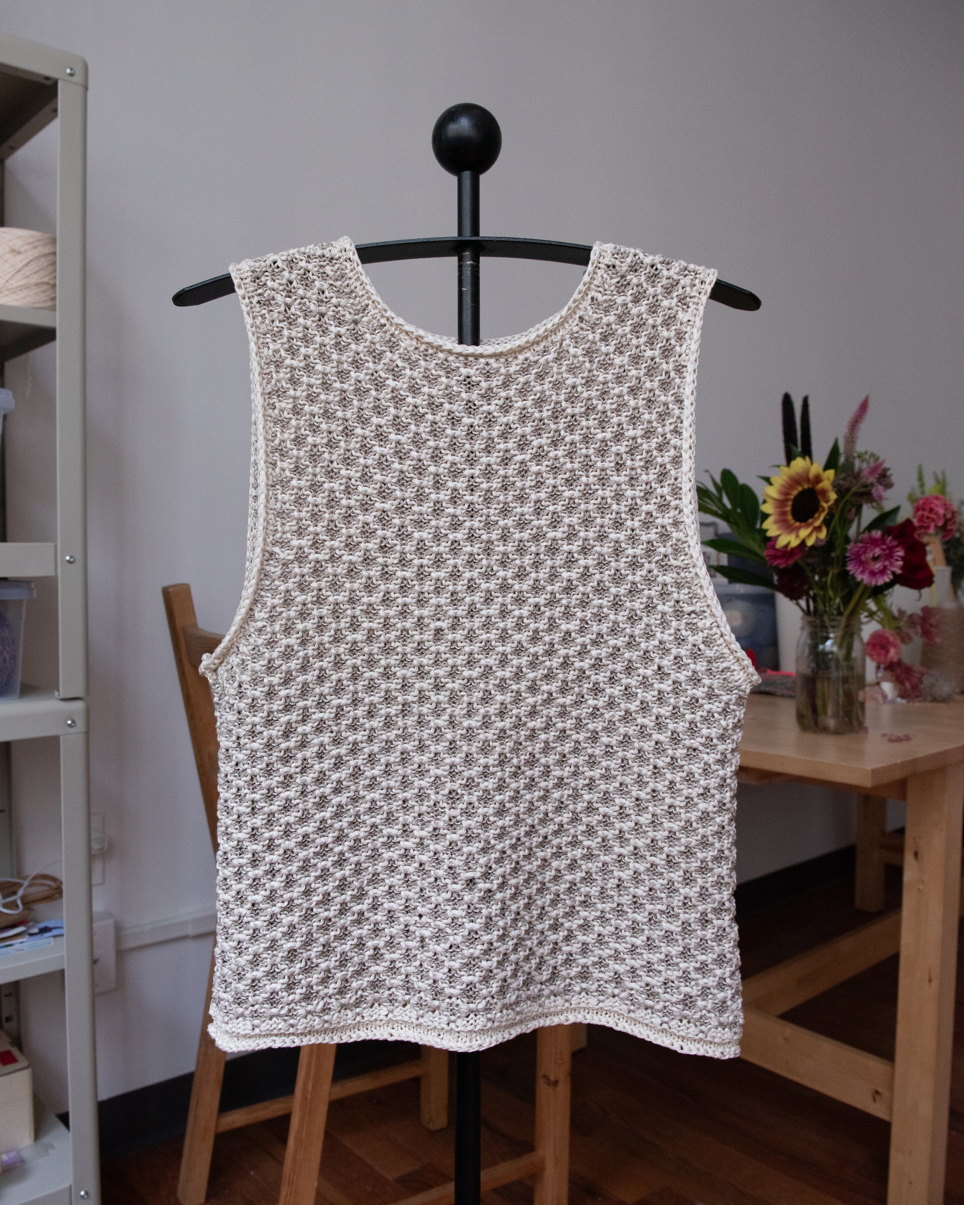 Handmade with a domestic knitting machine in Brooklyn, utilizing 100% reclaimed ‘waste’ yarn (damaged sweaters, deadstock, and scraps). Fits like a M.